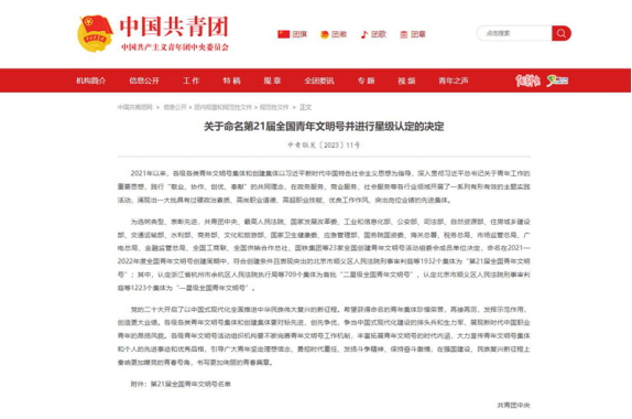 近日,共青团中央等单位联合发布了《关于命名第21届全国青年文明号并进行星级认定的决定》(中青联发〔2023〕11号),山东省工信厅直属单位省信息技术产业发展研究院“工业互联网与人工智能创新发展服务团队”光荣上榜,获得“一星级全国青年文明号”荣誉称号。今年3月,全国创建青年文明号活动组委会启动了第21届全国青年文明号推荐工作,经逐级推荐、择优遴选、严格把关和集中评审,共确定1932个集体为第21届全国青年文明号拟命名集体,其中全国工业和信息化系统共33个集体被认定。