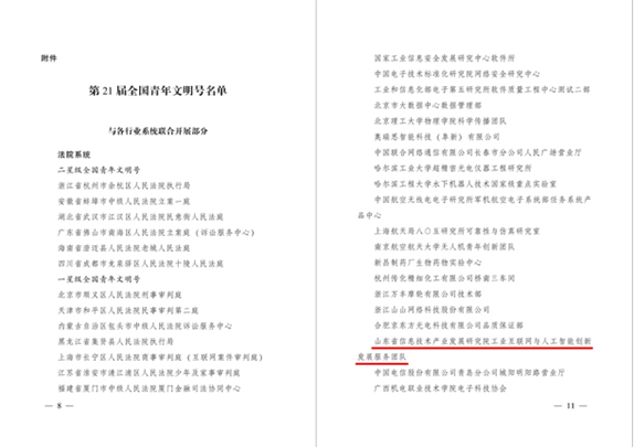 山东省信研院青年集体荣获第21届全国青年文明号称号